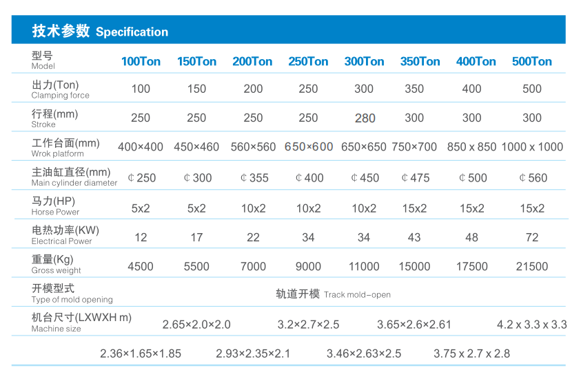 簡介:軌道開模,掀模角度可達90度,方便人員操作,適合二層模具使用;